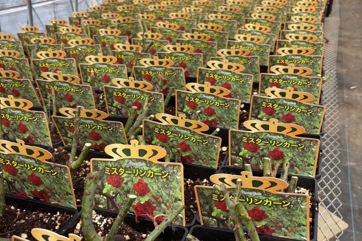 春の園芸シーズンに向けて、33品種、約5000鉢のバラ苗の出荷準備が完了しました。